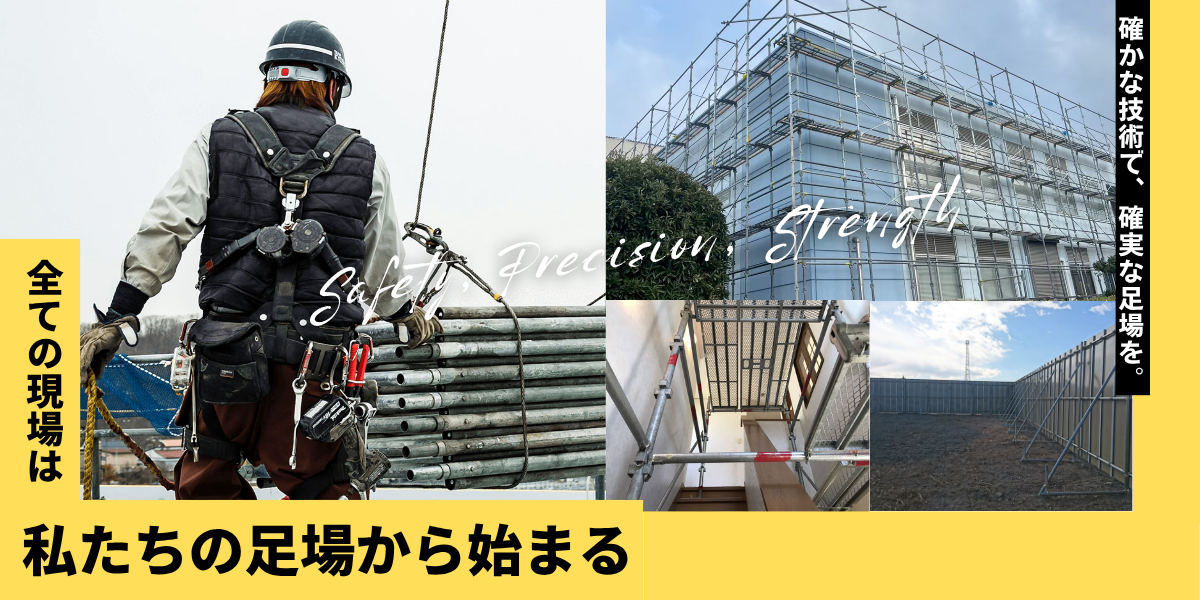 足場は、工事に関わる全ての人が安心して最高のパフォーマンスを発揮するための「基盤」です。